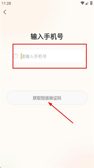 2、在输入手机号页面填写手机号后,点击获取短信验证码按钮。