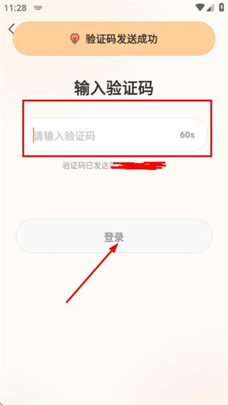 3、在输入验证码页面填写验证码后,点击登录完成账号登录操作。