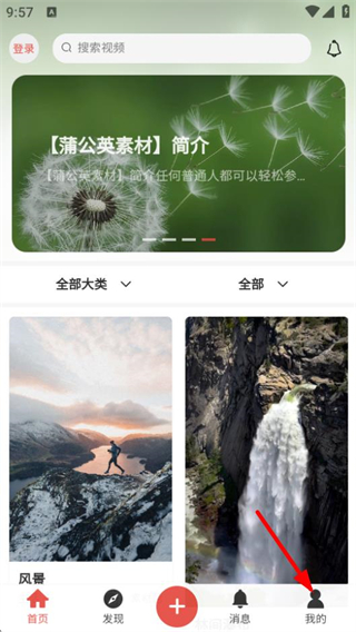 1、在蒲公英素材首页,点击底部导航栏的我的选项,可进入账户页面。