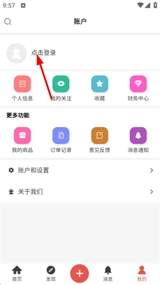 2、进入账户页面后,点击点击登录区域,可进入登录界面。