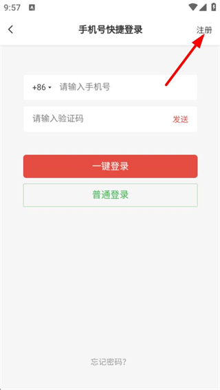 3、在手机号快捷登录界面,点击注册选项,可进入用户注册页面。