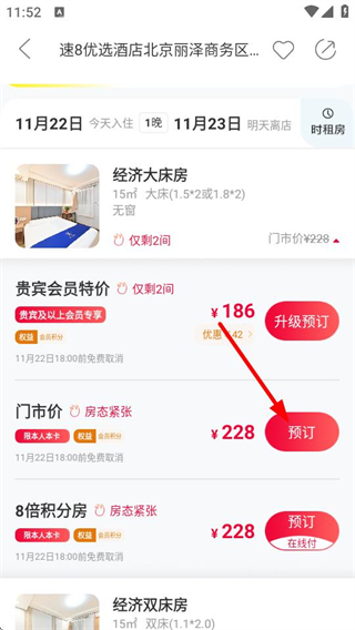 2、在酒店列表页面,选择目标酒店,进入酒店详情页面。