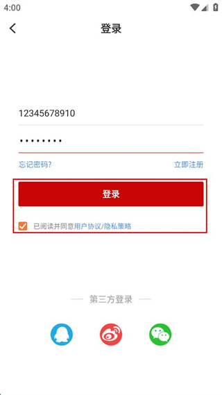 4、勾选已阅读并同意用户协议/隐私策略,点击登录。