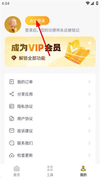 1、在功德页面,点击右下角我的选项,进入个人页面。