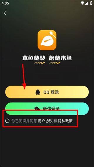 3、在登录选择页面,勾选协议后,选择qq即可完成登录。