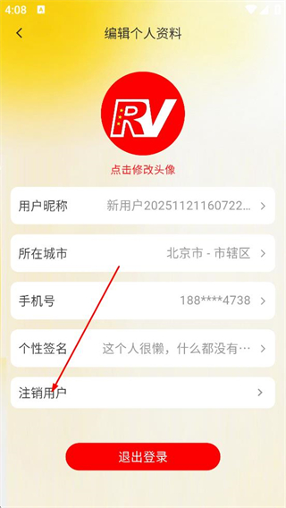 3、在编辑个人资料页面,点击注销用户,弹出确认注销账号提示框。