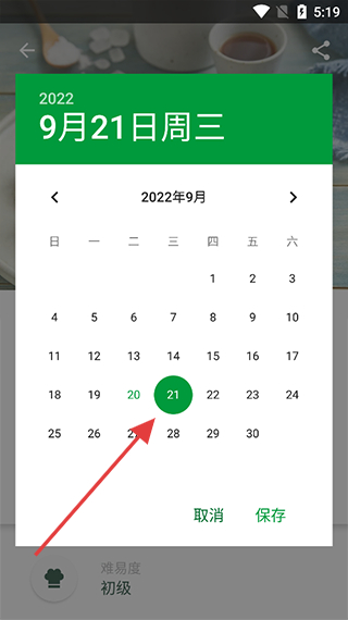 4、选择要添加菜谱的日期,点击保存,即可完成一周菜谱的制定。