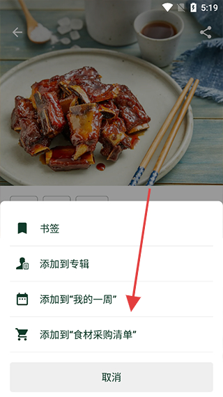 3、找到想要添加的菜谱后,点击操作选项并选择添加到‘我的一周’。