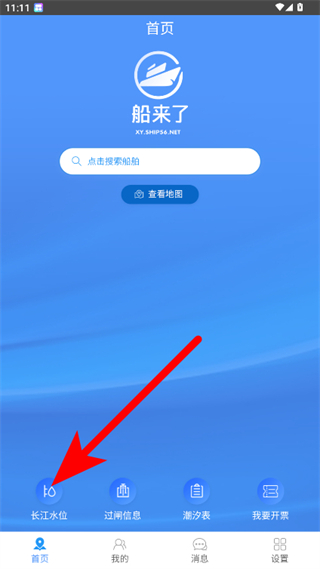 1、在船来了app首页,点击长江水位选项,进入水位查看页面。