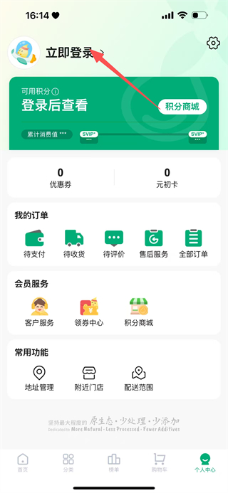 2、在个人中心页面,点击立即登录,进入登录界面。