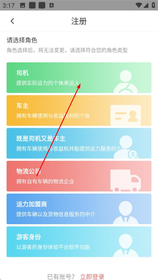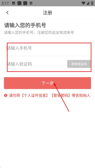 1、打开168运友物流APP,在登录界面点击注册,进入注册流程。