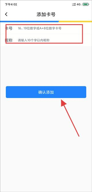3、在添加卡号页面输入卡号和昵称,点击“确认添加”,完成市民卡绑定。