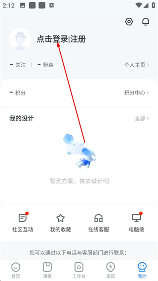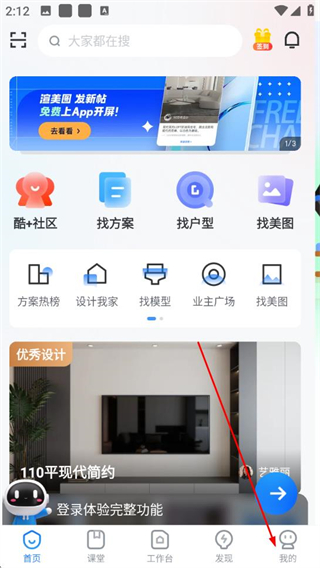 1、打开酷家乐APP,点击底部我的选项,进入个人中心页面。