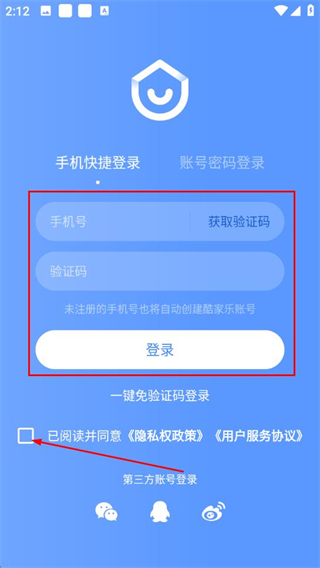3、勾选,输入手机号并获取验证码,点击登录,完成注册。
