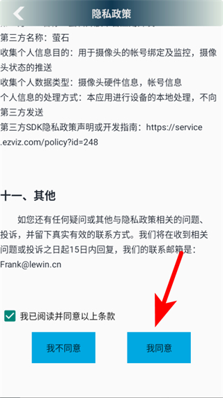2、在登录页面点击隐私政策,阅读后勾选我已阅读并同意以上条款,点击我同意。