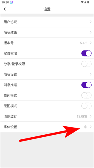 3、在设置页面,点击字体设置选项,弹出字体大小选择界面。