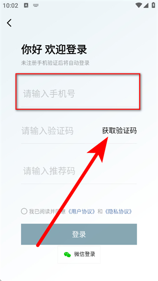 4、输入验证码及推荐码,勾选后,点击登录,完成登录。