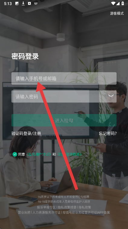 3、切换登录方式后,阅读完协议后点击勾选同意按钮。