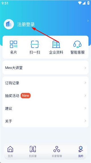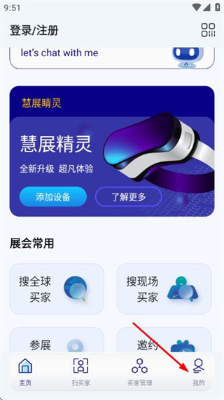 2、在个人页面点击注册登录,进入慧展的登录界面。