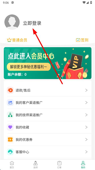 2、在个人中心界面,点击立即登录,进入登录选择界面。