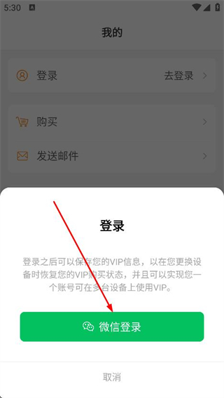 3、在弹窗中选择微信登录,根据提示完成授权即可登录账号。