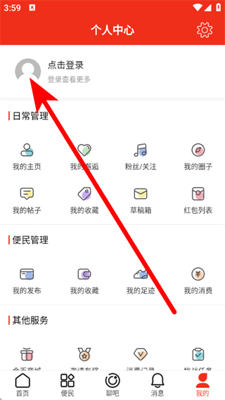 2、在个人中心页面,点击个人头像区域,进入登录页面。