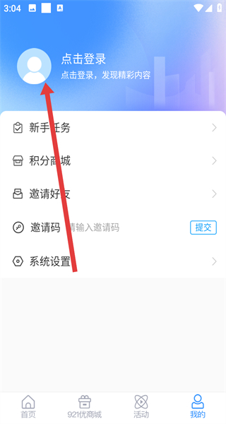 2、在进入到我的主页后,可以通过点击头像区域,进行登录操作。
