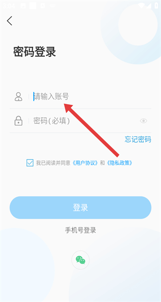 4、切换到密码登录界面,点击输入框依次填写账号和密码信息后,点击登录按钮即可完成登录。