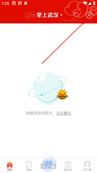 1、打开掌上武汉APP,点击右上角的个人中心图标,进入个人中心页面。
