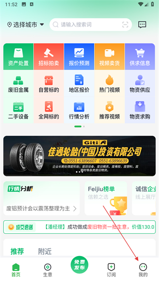Feijiu网app是中废通旗下的手机客户端,软件主要是提供信息免费发布,供求信息查询,资产处置查询,二手设备讯息查询,库存物资查询,废旧头条浏览等服务,赶快来下载体验吧;