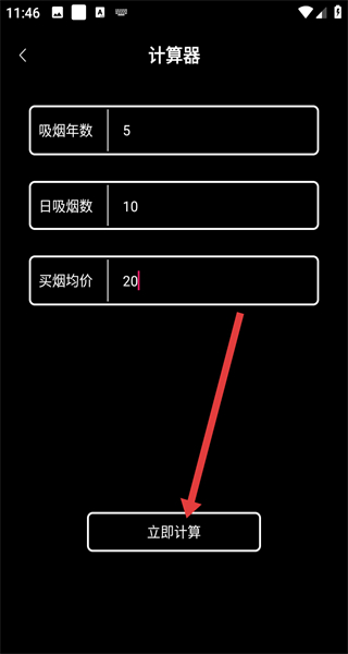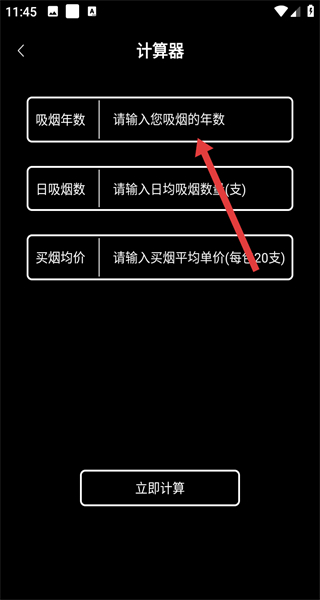 2、在计算器界面,依次输入吸烟年数、日吸烟数、买烟均价。