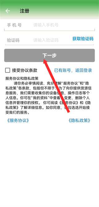 4、输入手机号、验证码后,点击下一步,后续根据提示完成注册。