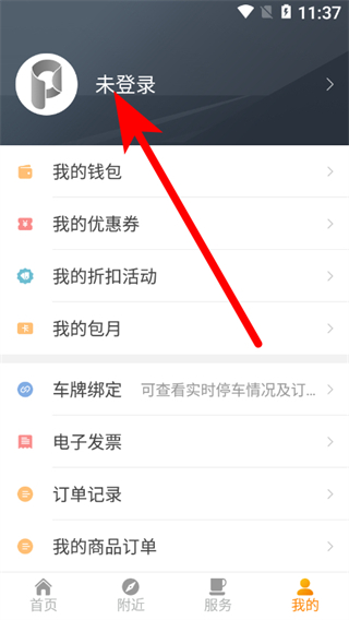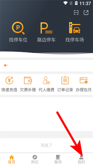 1、在任丘停车app首页,点击右下角我的选项,进入个人中心页面。
