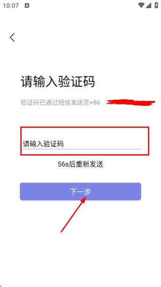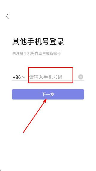 2、在其他手机号登录页面填写手机号码,点击下一步。