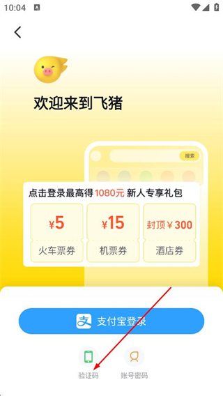 2、在登录选择界面,点击验证码,进入验证码登录流程。