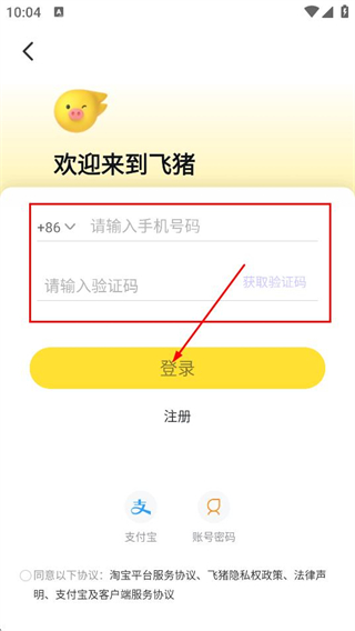 3、输入手机号码并输入验证码,点击登录,完成登录操作。
