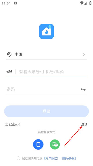 1、在有看头的登录界面,点击注册,随后即可进入注册流程。