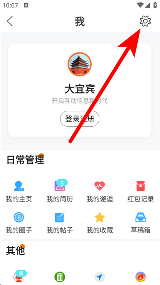 2、在我的页面,点击右上角设置,进入设置页面。