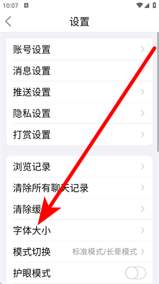 3、在设置列表中,点击选择字体大小。