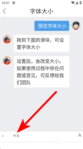 4、拖动页面底部的滑块,调整字体大小,完成后生效。