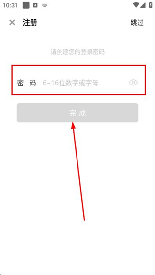 3、在密码设置页面填写符合要求的密码,点击完成即可完成账号注册操作。
