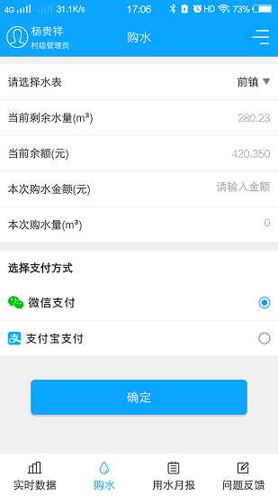 村级水表几大模块。通过手机端实现自动缴费功能,大大简化了业务流程。