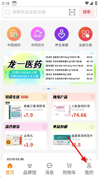 1、在药品终端网首页,点击底部导航栏的我的选项,进入个人中心页面。