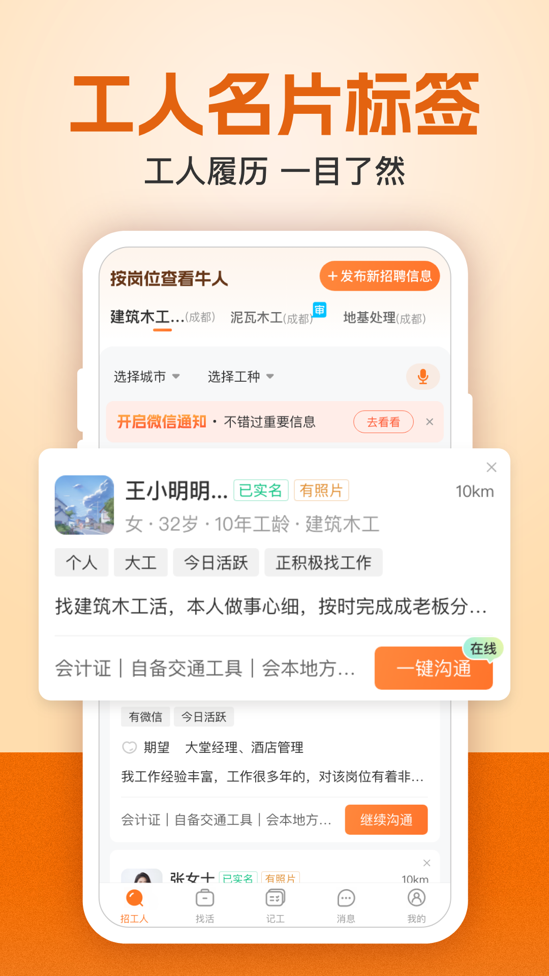 建筑工地找老乡:工地同城找老乡,让建筑工友接活招工更加轻松方便;