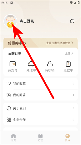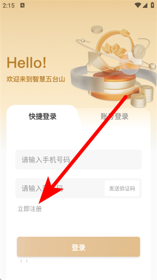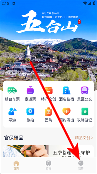 1、打开智慧五台山,点击底部我的,进入我的页面。