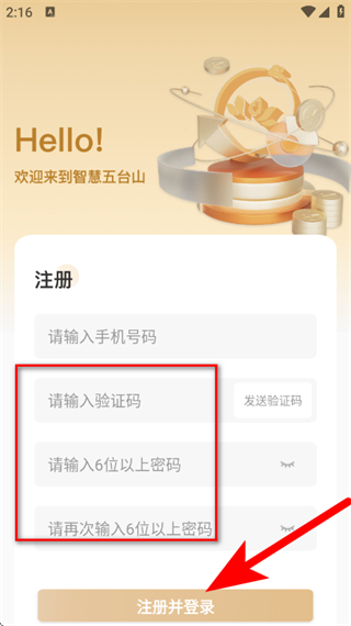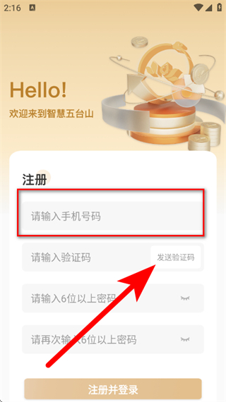 5、输入验证码,设置6位以上密码后,点击注册并登录,完成账号注册。