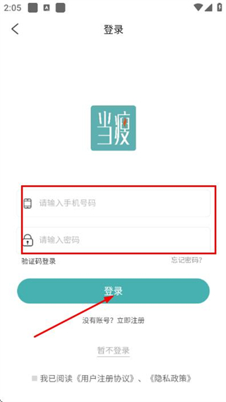 3、在登录页面填写手机号和密码对应的内容,勾选协议后,点击登录完成账号登录操作。