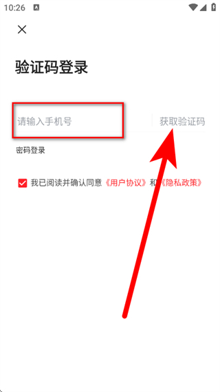 3、输入手机号,勾选已阅读并确认同意后,点击获取验证码。
