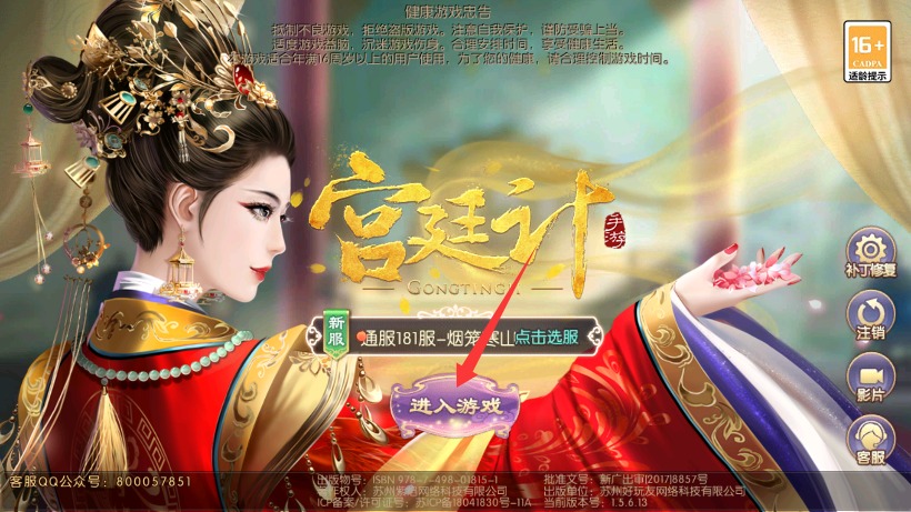 1、启动游戏后选择合适的区服点击进入,即可开启这段充满权谋的宫廷生涯旅程。
