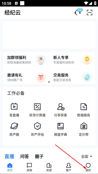 1、在经纪云首页,点击底部我的,进入个人中心页面。